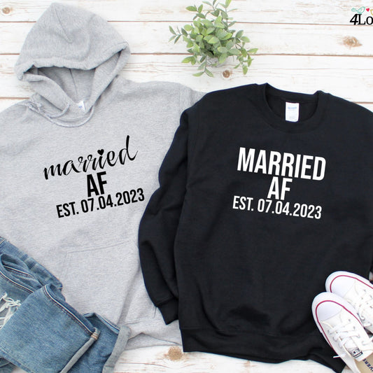 Married AF Hoodie, Wifey Hubby Sweatshirts, Honeymoon Long Sleeve Shirts, Bride Shirts, Groom Shirts, Mr And Mrs Shirt, Just Married Shirts