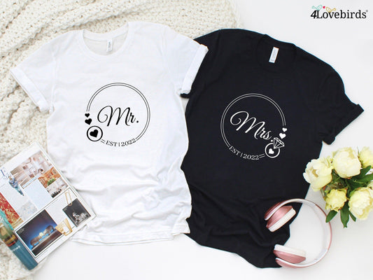 Mr and Mrs est. 2022 Hoodie, Lovers matching T-shirt, Gift for Couple, Married Sweatshirt,, Husband and Wife Longsleeve, Plain model