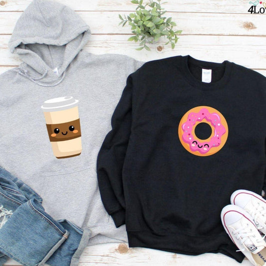 Delectable Matching Outfits: Coffee & Donuts Set, Ideal Present for Foodie Couples!