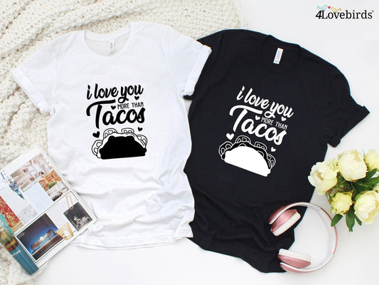 I Love You More Than Tacos Hoodie, Funny matching T-shirt, Gift for Foodie Couple, Valentine Sweatshirt, Boyfriend and Girlfriend Longsleeve