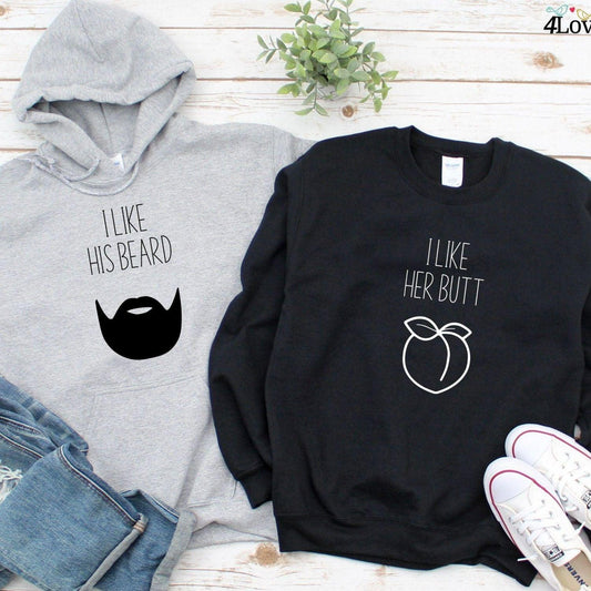 Matching Set: I Like Her Butt & His Beard - Funny Couple Outfit & Gift for Couples