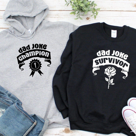 Matching Set: Dad Joke Survivor & Champion Outfits, Funny Couple Gift, Cute Valentine Apparel.