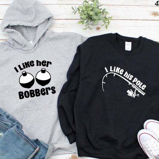 Matching Set: I Like Her Bobbers His Pole T-Shirt - Funny Couples Gift for Valentine's Day