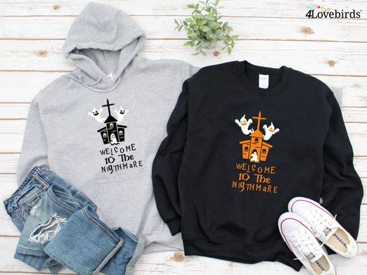 Welcome To The Nightmare Hoodie, Matching Ghost Shirt, Halloween Sweatshirts, Halloween Long Sleeve Shirts For Couples, Costume Hoodies
