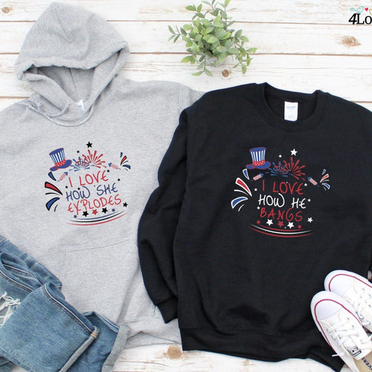 4th of July Matching Outfits: I Love How She Explodes & He Bangs, Comical Couple's Set