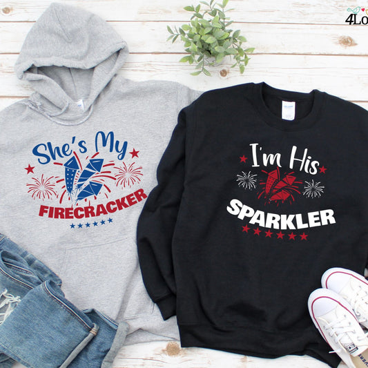 His Sparkler & Her Firecracker Fourth of July Matching Outfits, Humorous 4th July Couple Sets