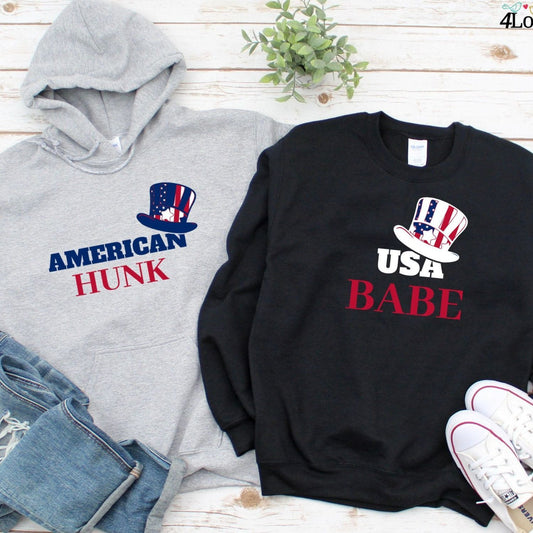 American Hunk/USA Babe Fourth of July Matching Outfits Set, 4th of July His & Her Gifts