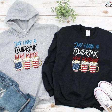 Outdrink My Spouse Humorous 4th of July Matching Outfits, Comical Couple's Set