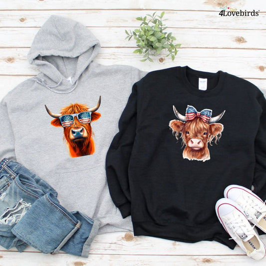 Patriotic Highland Cow 4th of July Matching Outfits - Party in the USA Set