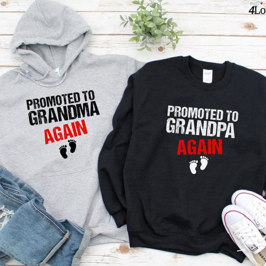 Pregnancy Reveal Matching Outfits: Promoted to Grandpa & Grandma Again Set