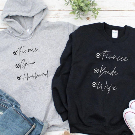 Newlywed Duo Matching Set: Stylish Bride-Groom Fiance-Fiancee Husband-Wife Attire