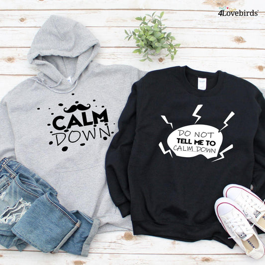 Funny Matching Set for Couples - Husband & Wife Outfits - His & Hers Tees - Calm Down!