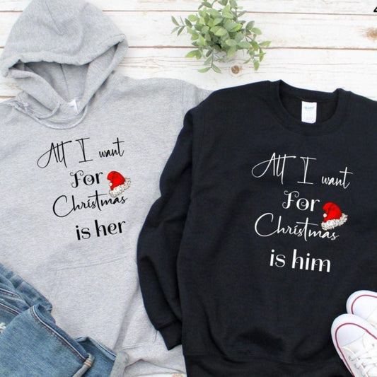 Christmas Matching Set: All I Want for Christmas is Him/Her - Perfect Festive Outfits