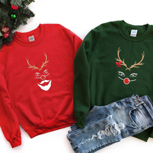 Funny Christmas Matching Set: Reindeer Couple Shirts & Very Merry Ugly Xmas Sweaters