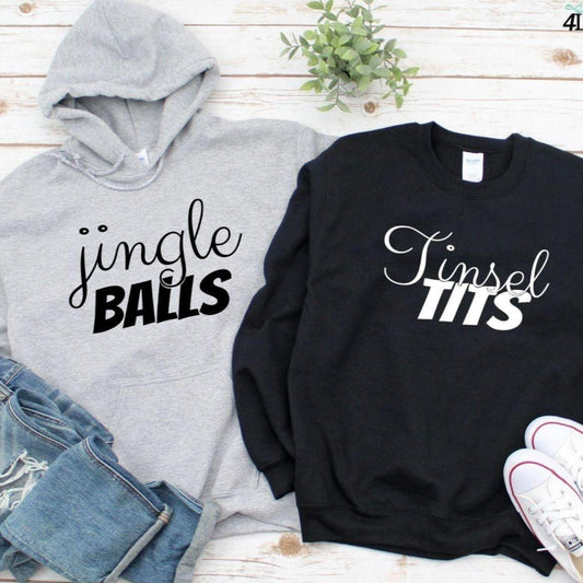 Jingle Balls & Tinsel Tits Matching Set - Funny Xmas Outfit for Couples.