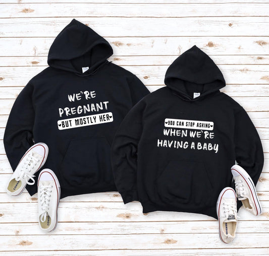 You Can Stop Asking When We're Having A Baby/We're Pregnant But Mostly Her T-Shirt, Parents Gifts, Parents Hoodies, Mom & Dad Sweatshirts
