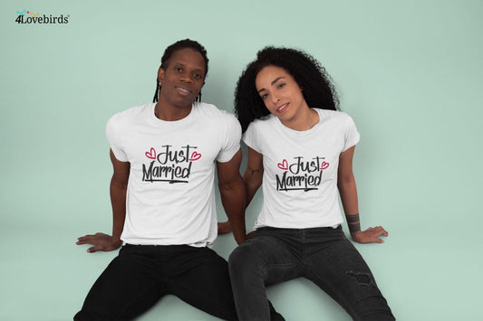 Just Married Mr. & Mrs. Matching Outfits - Cute Vintage Set for Couples & Honeymoon Gifts