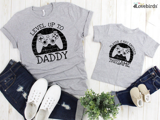 Leveled Up To Daddy - Player 2 Has Entered The Game Hoodie - Promoted To Dad - Baby Announcement - Pregnancy Gift Shirt - Daddy, Mommy & Me