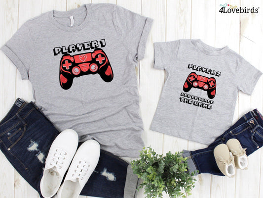 Player 2 Has Entered The Game and Player 1 Hoodie - Matching Family Shirt - Baby Announcement - Gamer Parents - Daddy, Mommy & Me