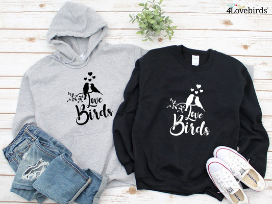Love Birds Hoodie, Lovers matching T-shirt, Gift for Couples, Valentine Sweatshirt, Boyfriend / Girlfriend Longsleeve, Cute Tshirt