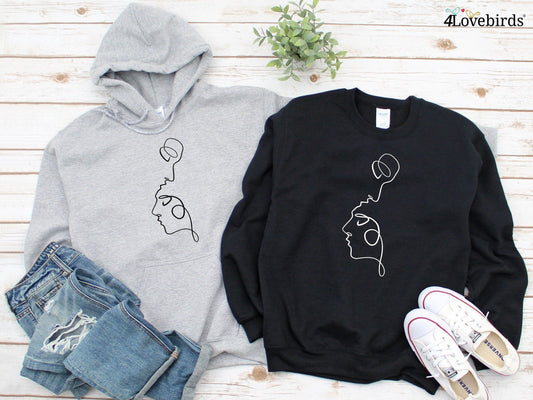 Abstract Face Hoodie, Lovers T-shirt, Gift for Couples, Valentine Sweatshirt, Boyfriend / Girlfriend Longsleeve, Cute basic Tshirt