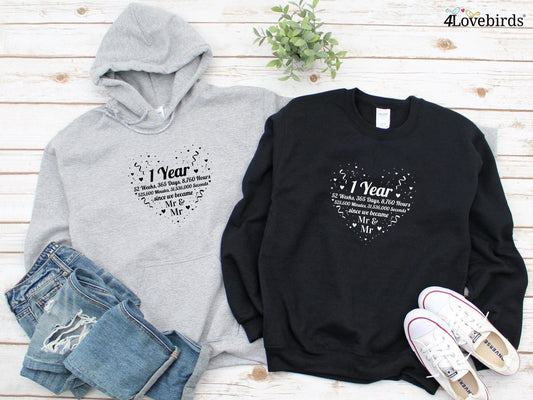 First anniversary Hoodie, Celebrating Lovers matching T-shirt, Gift for Couples, Valentine Sweatshirt, Boyfriend / Girlfriend Longsleeve