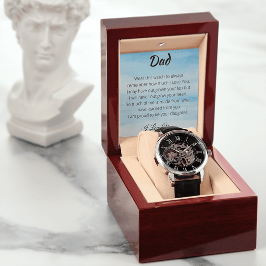 To My Father In Law Watch, Men's Openwork Leather Band Watch with Message Card in Mahogany Style Box, Father's Day Gift, Birthday Gift Men's Openwork Watch With Message and Luxury Box