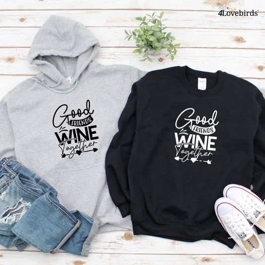 Wine Lover Matching Outfit Set - Good Friends Wine Together, Humorous Best Friend Gift