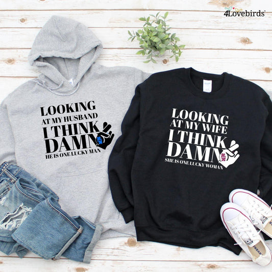 Matching Set: 'Look At My Wife/Husband, Lucky Woman/Man' Hoodie & Sweatshirt