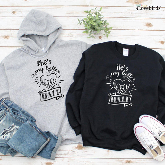 Matching Set: 'She/He is My Better Half' Gift for Couples, Valentine Tees