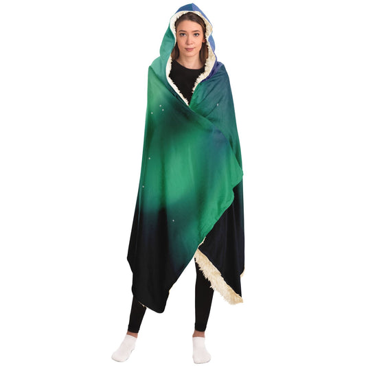 Aurora Borealis Hooded Blanket, Handmade Crafted, Vegan Blanket, With Hood, Multi Colored, Custom Made Quilt, Yoga, Meditation