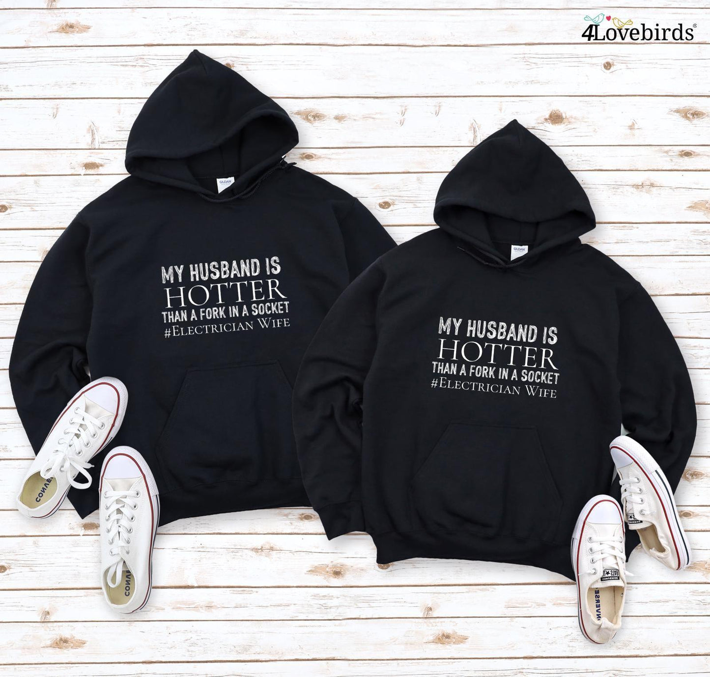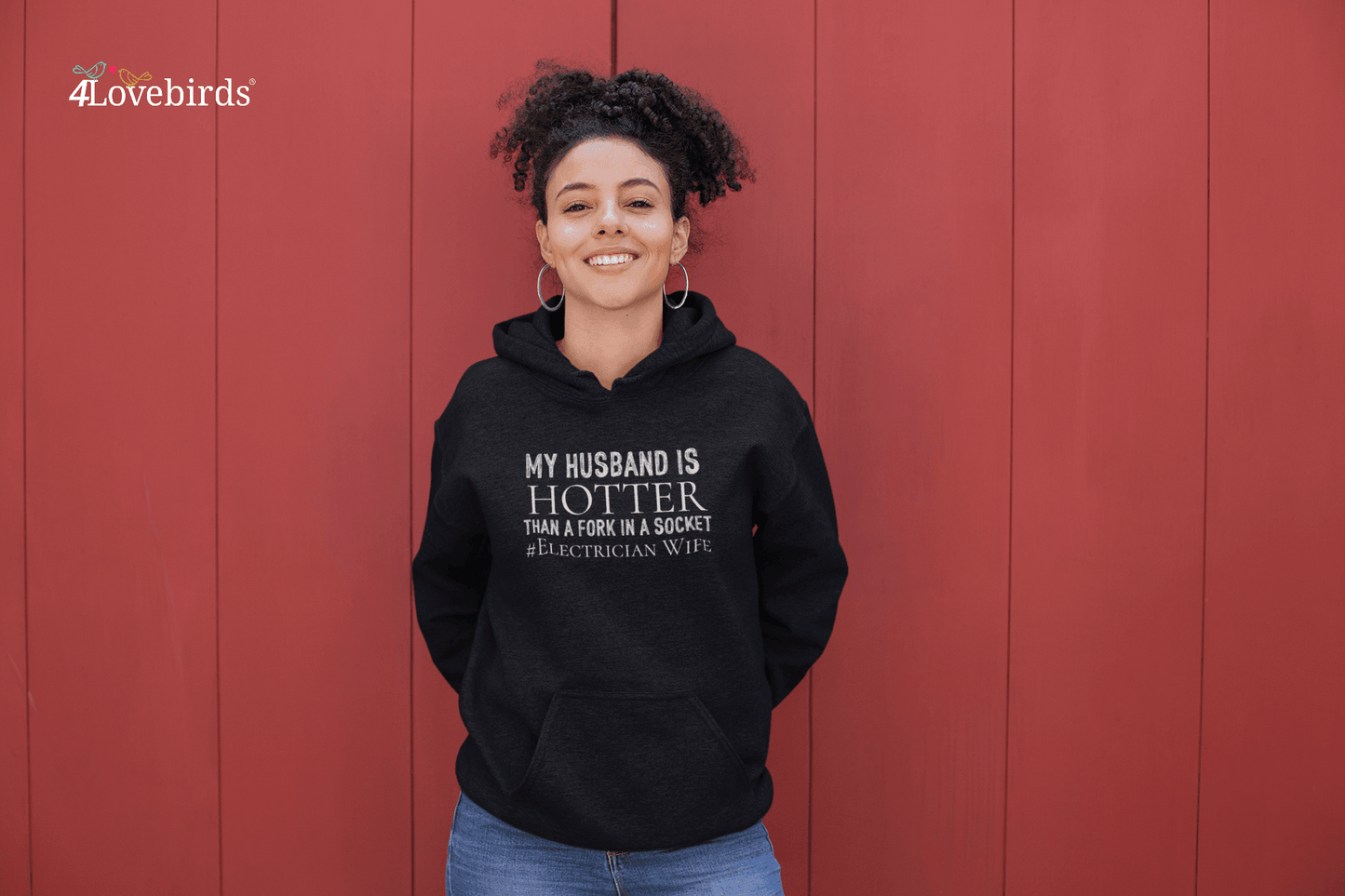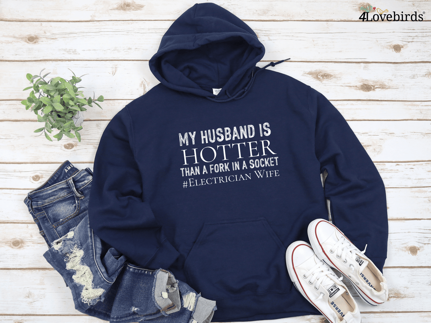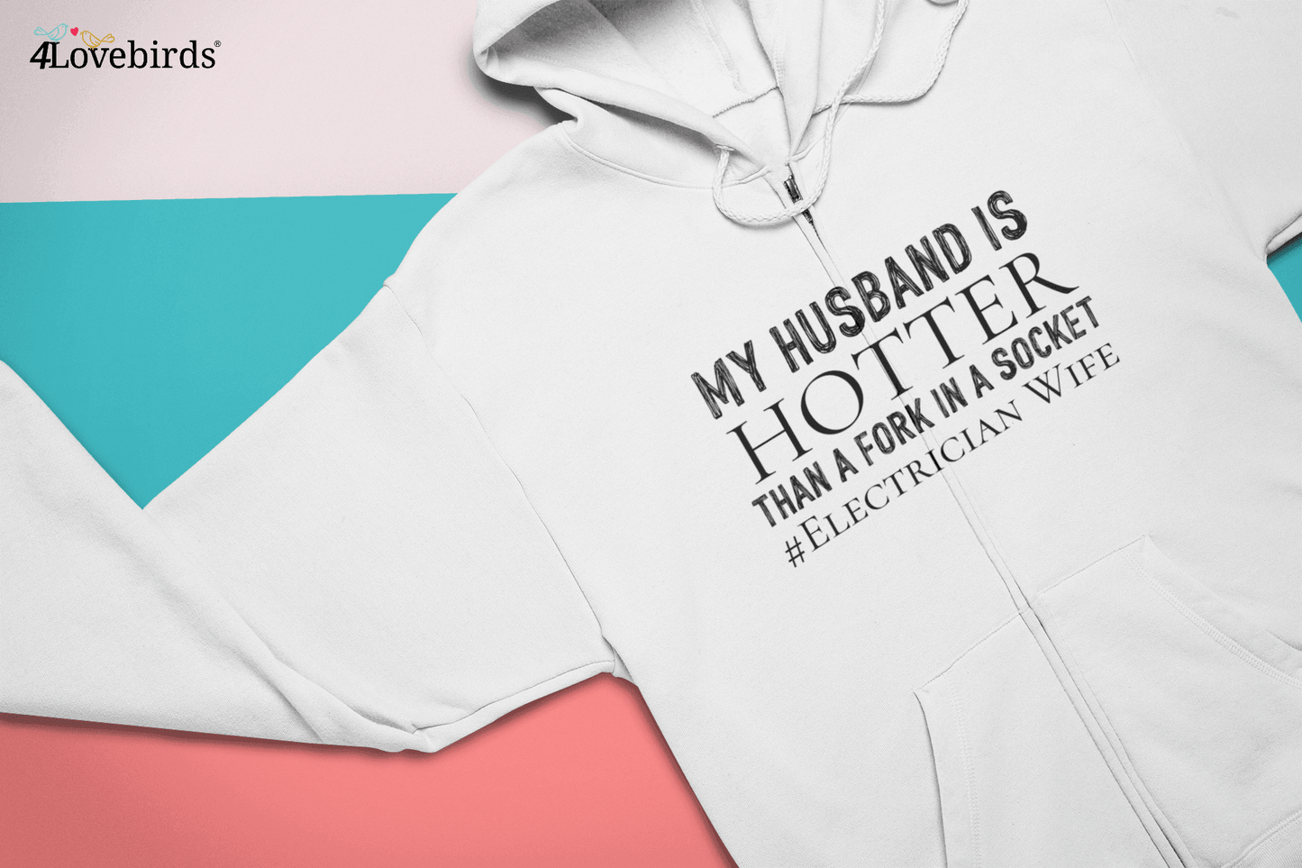 My Husband Is Hotter Than A Fork In A Socket T-Shirt, Electrician Wife Hoodies, Wife Gifts, Wife Sweatshirts