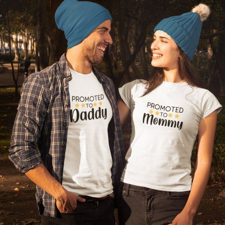 👫 💖Are you looking for a fun and memorable way to share your exciting news? Our “Promote to Daddy/Mommy” matching outfits are the perfect solution! These adorable sets not only make pregnancy announcements a breeze, but they also serve as fantastic gifts for couples. Crafted with love, they symbolize the beautiful bond between two people and their journey into parenthood. These aren't just clothes, they're keepsakes! So, why wait? Get your hands on these cute matching outfits and make your special moments even more unforgettable! 👶🍼💑