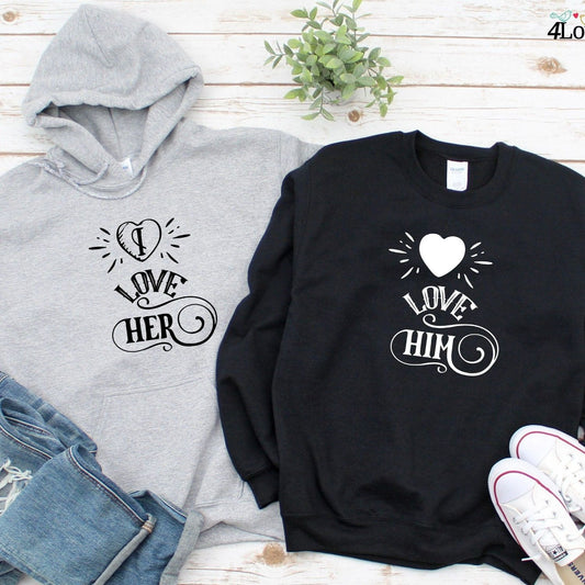 I love you Hoodie, Lovers matching T-shirt, Gift for Couples, Valentine Sweatshirt, Boyfriend / Girlfriend Longsleeve, Cute Heart Tshirt