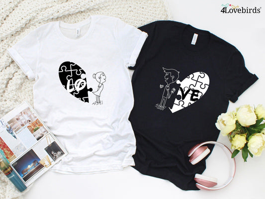 Puzzle Love Hoodie, Lo Ve Couple Love Shirt, Valentine's Day Matching T Shirts, Valentine's Day Gift, Cute Couple Tee, LO-VE Matching Couple
