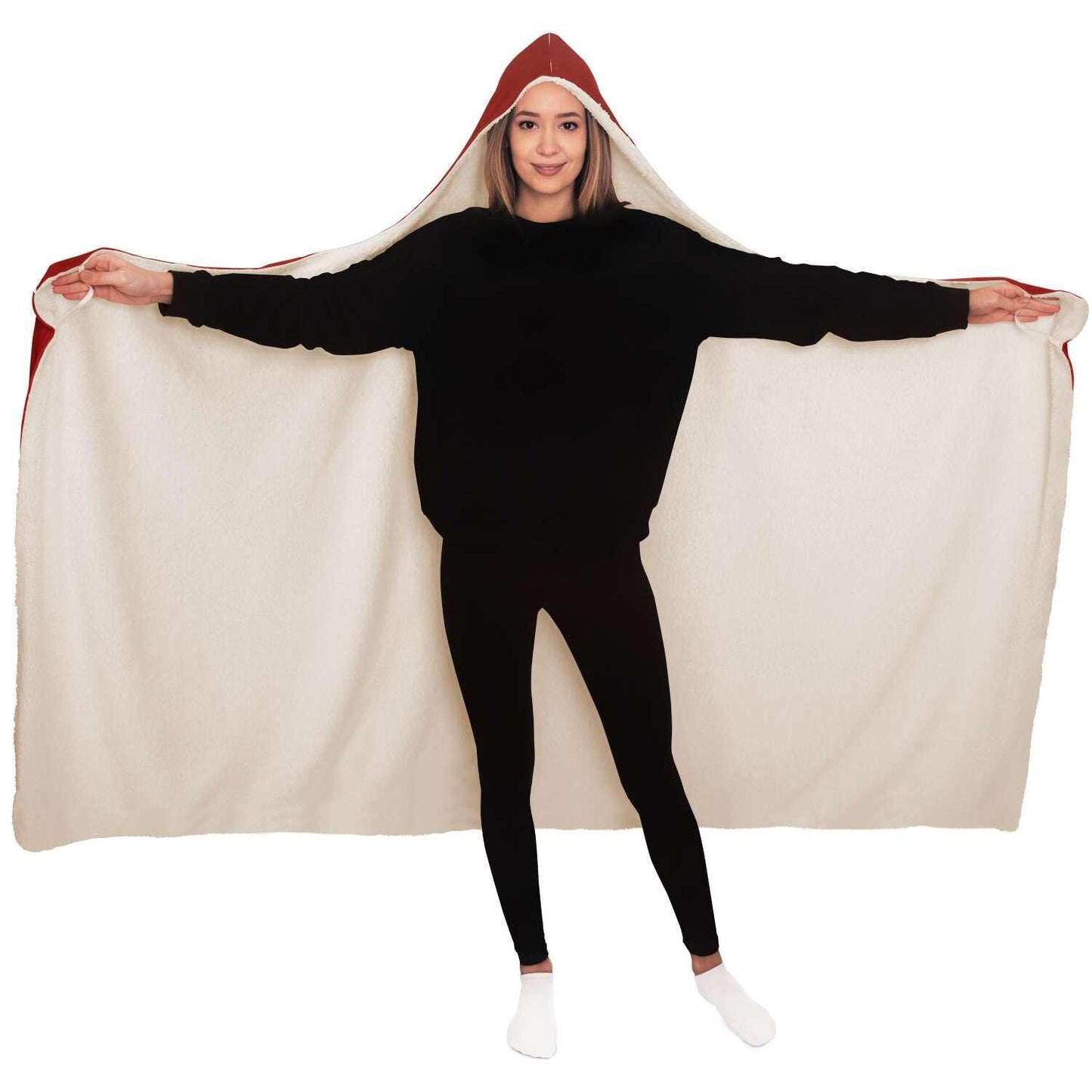 This hooded blanket is crafted from an outer silky smooth micro-mink polyester face. For the inside you can choose from an ultra soft microfiber fleece lining, or a premium plush 100% polyester sherpa lining.