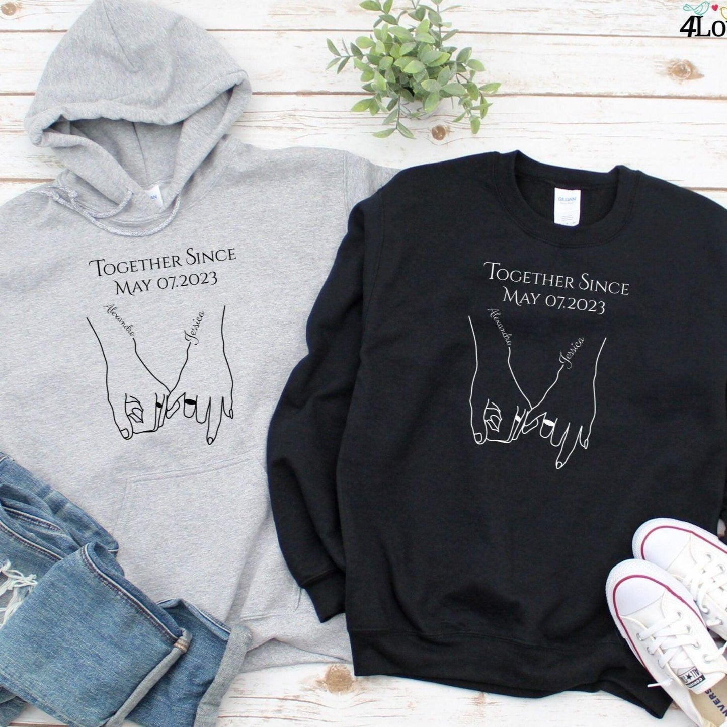 Make your Valentine's Day extra special this year with our custom name matching set! Perfect for couples, this personalized and stylish gift includes two matching shirts, hoodies, or sweatshirts. Show off your love for each other with unique and funny matching shirts, or express your relationship with a cute couple hoodie. No matter what your style is, you can find the perfect matching set here. Shop our wide selection of matching sets today and make your Valentine's Day one to remember!