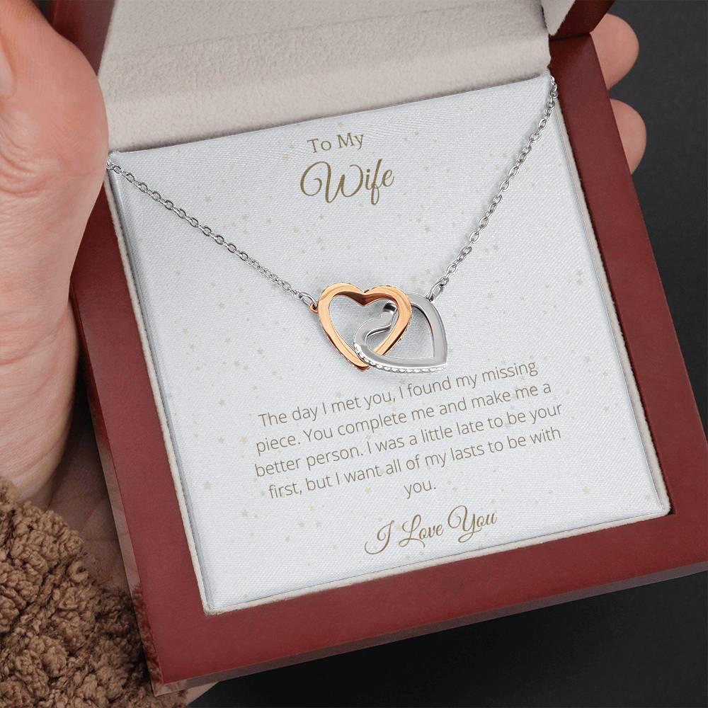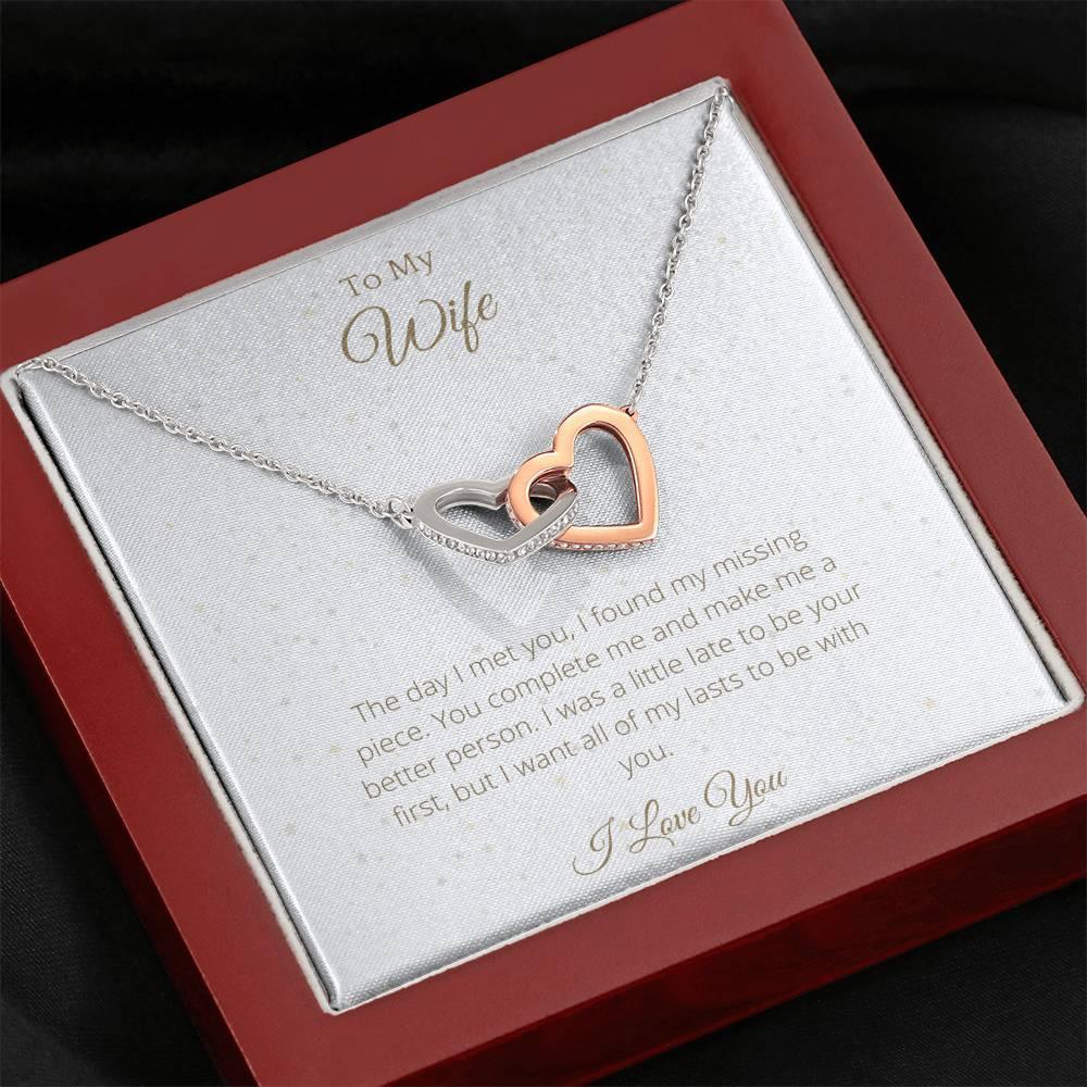 Two hearts embellished with Cubic Zirconia stones, interlocked together as a symbol of never-ending love. Made with high quality polished surgical steel. Cable chain measures 18 inches with a 4 inch extension, and fastens with a lobster clasp.
