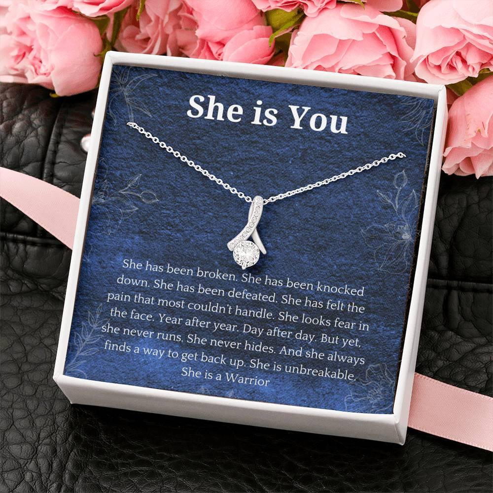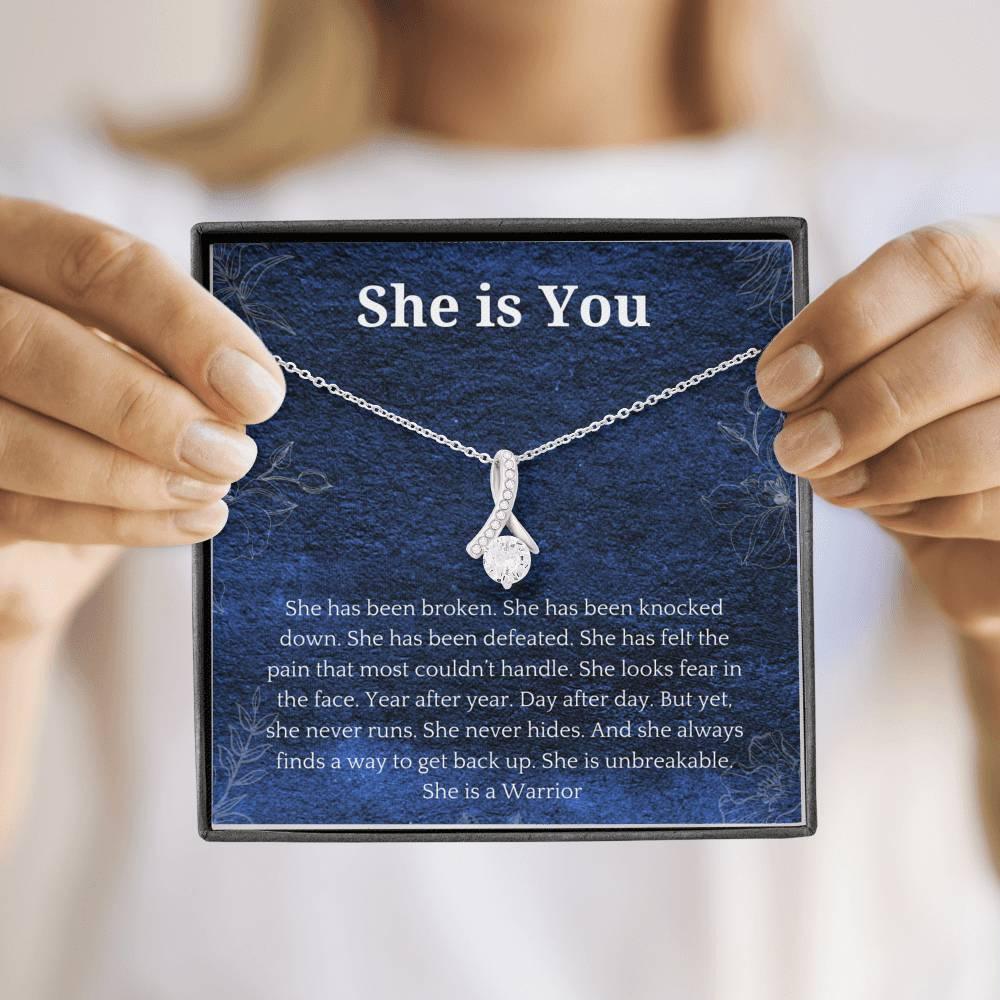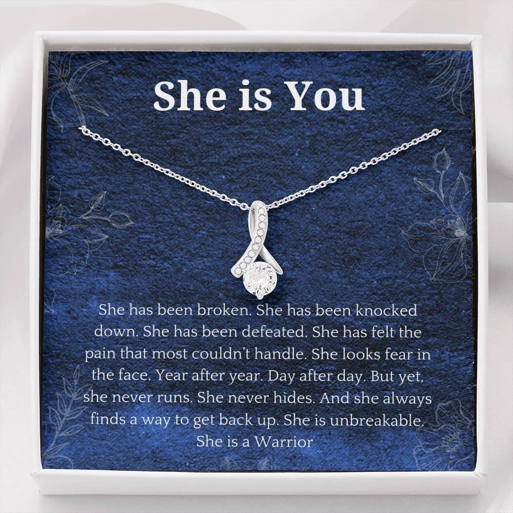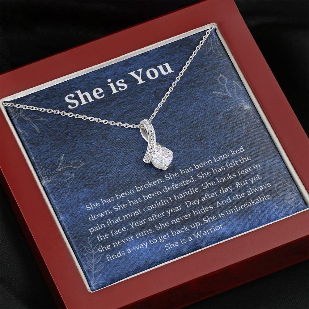 Melt her heart with this ALLURING BEAUTY necklace gift! The petite ribbon shaped pendant is finished with 14K white gold over stainless steel, and is embellished with dainty clear crystals surrounded by a sparkling 7mm round cut Cubic Zirconia.